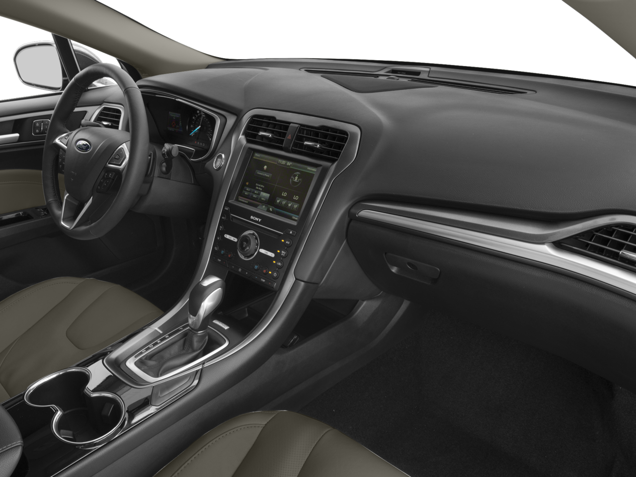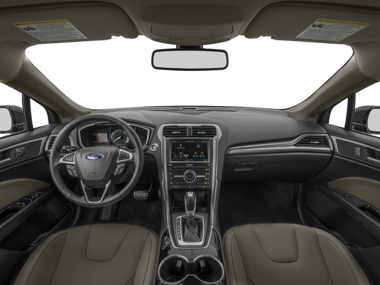 This Fusion Titanium is nicely equipped with Equipment Group 300A, 6-Speed Automatic, 12 Speakers, 18 Premium Polished Aluminum Wheels, 4-Wheel Disc Brakes, ABS brakes, Air Conditioning, Alloy wheels, AM/FM radio: SiriusXM, Auto-dimming door mirrors, Auto-dimming Rear-View mirror, Automatic temperature control, Brake assist, Bumpers: body-color, CD player, Compass, Delay-off headlights, Driver door bin, Driver vanity mirror, Dual front impact airbags, Dual front side impact airbags, Electronic Stability Control, Emergency communication system: 911 Assist, Exterior Parking Camera Rear, Four wheel independent suspension, Front anti-roll bar, Front Bucket Seats, Front Center Armrest, Front dual zone A/C, Front fog lights, Front reading lights, Fully automatic headlights, Heated door mirrors, Heated front seats, Illuminated entry, Knee airbag, Leather Shift Knob, Leather-Trimmed Heated Sport Bucket Seats, Low tire pressure warning, Memory seat, New Feature 2, New Feature 3, New Feature 4, New Feature 5, New Feature 6, Occupant sensing airbag, Outside temperature display, Overhead airbag, Overhead console, Panic alarm, Passenger door bin, Passenger vanity mirror, Power door mirrors, Power driver seat, Power Moonroof, Power passenger seat, Power steering, Power windows, Radio data system, Radio: AM/FM Stereo/MP3/Single-CD, Rear anti-roll bar, Rear Parking Sensors, Rear reading lights, Rear seat center armrest, Rear window defroster, Remote keyless entry, Security system, SiriusXM Radio, Speed control, Speed-sensing steering, Speed-Sensitive Wipers, Split folding rear seat, Spoiler, Steering wheel mounted audio controls, SYNC w/MyFord Touch, Tachometer, Telescoping steering wheel, Tilt steering wheel, Traction control, Trip computer, Turn signal indicator mirrors, Universal Garage Door Opener, and Variably intermittent wipers Price does not include dealer-installed equipment. Price(s) include(s) all costs to be paid by a consumer, except for licensing costs, registration fees, $799 administrative fees, taxes, and $798 Triton VIP Protection Plan.