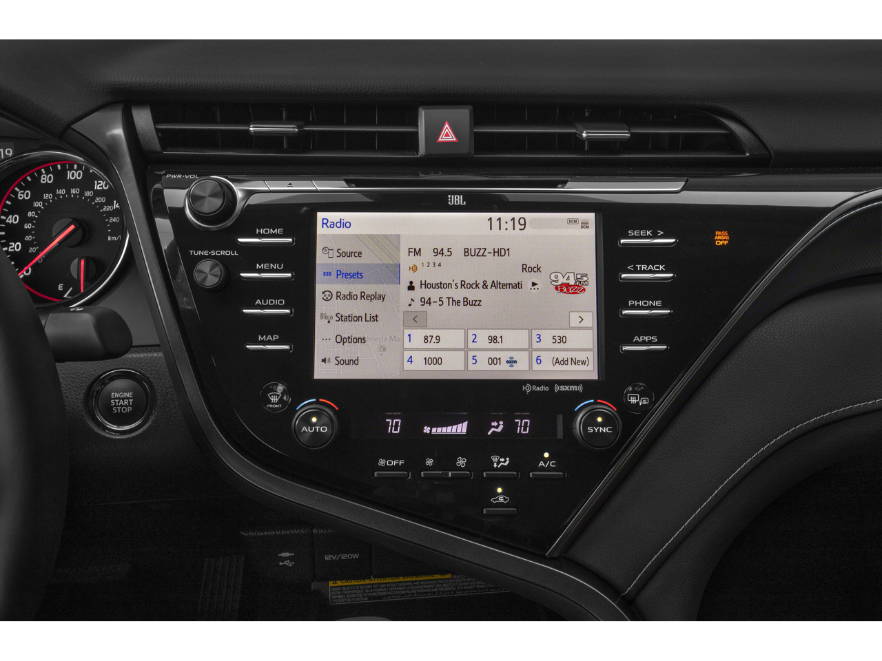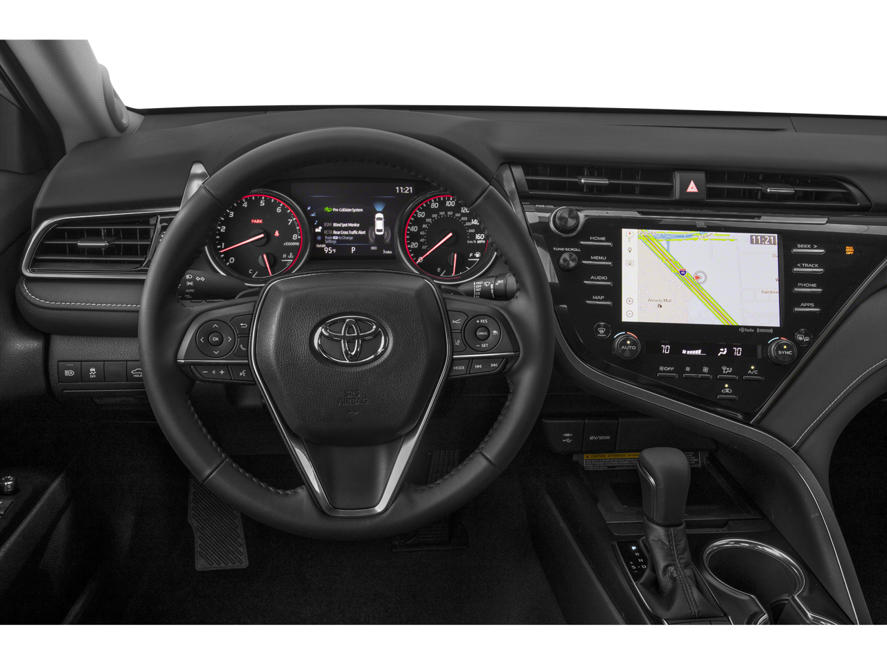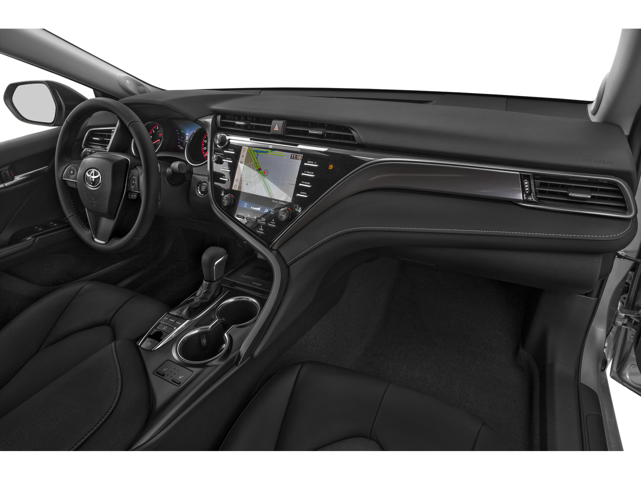 This Camry XSE is nicely equipped with Black Leather, 4-Wheel Disc Brakes, 6 Speakers, ABS brakes, Air Conditioning, Alloy wheels, AM/FM radio: SiriusXM, Apple CarPlay/Android Auto, Auto High-beam Headlights, Auto-dimming Rear-View mirror, Automatic temperature control, Brake assist, Bumpers: body-color, CD player, Compass, Delay-off headlights, Driver door bin, Driver vanity mirror, Dual front impact airbags, Dual front side impact airbags, Electronic Stability Control, Emergency communication system: Safety Connect with 1-year trial, Exterior Parking Camera Rear, Four wheel independent suspension, Front anti-roll bar, Front Bucket Seats, Front Center Armrest, Front dual zone A/C, Front reading lights, Fully automatic headlights, Garage door transmitter: HomeLink, Heated door mirrors, Heated front seats, Illuminated entry, Knee airbag, Leather Seat Trim, Leather Shift Knob, Low tire pressure warning, Multi-Stage Heated Front Bucket Seats, New Feature 2, New Feature 3, New Feature 4, New Feature 5, New Feature 6, Occupant sensing airbag, Outside temperature display, Overhead airbag, Overhead console, Panic alarm, Passenger door bin, Passenger vanity mirror, Power door mirrors, Power driver seat, Power passenger seat, Power steering, Power windows, Radio data system, Radio: AM/FM/HD Audio Plus, Rear anti-roll bar, Rear reading lights, Rear seat center armrest, Rear side impact airbag, Rear window defroster, Remote keyless entry, Security system, Speed control, Speed-sensing steering, Split folding rear seat, Spoiler, Sport steering wheel, Steering wheel mounted audio controls, Tachometer, Telescoping steering wheel, Tilt steering wheel, Traction control, Trip computer, Turn signal indicator mirrors, Variably intermittent wipers, and Wheels: 8.0J x 19 Black Machined-Finish Alloy Price does not include dealer-installed equipment. Price(s) include(s) all costs to be paid by a consumer, except for licensing costs, registration fees, $799 administrative fees, taxes, and $798 Triton VIP Protection Plan.