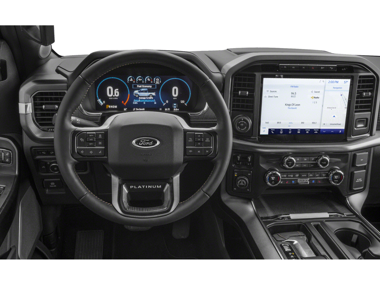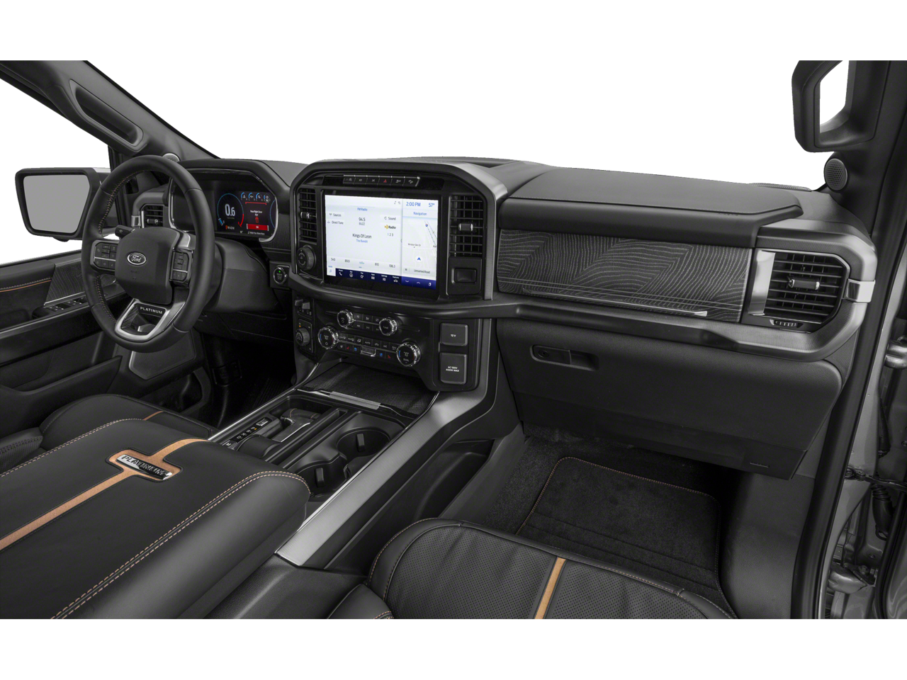 This F-150 Platinum is nicely equipped with Equipment Group 701A High (Power Tailgate and Radio: B&O Unleashed Sound System by Bang & Olufsen), Ford Co-Pilot360 Active 2.0 Package (Active Park Assist 2.0 and BlueCruise Hands-Free Driving), FX4 Off-Road Package (4x4 FX4 Off-Road Bodyside Decal, Hill Descent Control, Monotube Rear Shocks, Off-Road Tuned Front Shock Absorbers, Rock Crawl Mode, and Tray Style Floor Liner), GVWR: 7,350 lbs Payload Package, Tow Technology Package (360 Degree Camera and Pro Trailer Backup Assist), Trailer Tow Package (Class IV Trailer Hitch Receiver and Integrated Trailer Brake Controller), 3.5L PowerBoost Full-Hybrid V6, 4WD, 20 Polished Aluminum Wheels, 4-Wheel Disc Brakes, 4WD / AWD, 8 Speakers, ABS brakes, Adjustable pedals, Air Conditioning, Alloy wheels, AM/FM radio: SiriusXM with 360L, Auto High-beam Headlights, Auto tilt-away steering wheel, Auto-dimming door mirrors, Auto-dimming Rear-View mirror, Automatic temperature control, Brake assist, Bumpers: body-color, Compass, Delay-off headlights, Driver door bin, Driver vanity mirror, Dual front impact airbags, Dual front side impact airbags, Electronic Locking w/3.73 Axle Ratio, Electronic Stability Control, Emergency communication system: SYNC 4 911 Assist, Exterior Parking Camera Rear, Front anti-roll bar, Front Bucket Seats, Front Center Armrest, Front dual zone A/C, Front fog lights, Front reading lights, Front wheel independent suspension, Fully automatic headlights, Garage door transmitter, Heated door mirrors, Heated front seats, Heated rear seats, Heated steering wheel, Illuminated entry, Interior Work Surface, LED Sideview Mirror Spotlights, Low tire pressure warning, Memory seat, Navigation system: Connected Navigation (90-Day Trial), Occupant sensing airbag, Outside temperature display, Overhead airbag, Overhead console, Panic alarm, Park Assist, Passenger door bin, Passenger vanity mirror, Pedal memory, Power door mirrors, Power driver seat, Power passenger seat, Power steering, Power windows, Pro Power Onboard - 7.2KW, Radio data system, Radio: B&O Sound System by Bang & Olufsen, Rain sensing wipers, Rear reading lights, Rear seat center armrest, Rear step bumper, Rear window defroster, Remote keyless entry, Security system, Speed control, Speed-sensing steering, Split folding rear seat, Steering wheel memory, Steering wheel mounted audio controls, SYNC 4 w/Enhanced Voice Recognition, Tachometer, Telescoping steering wheel, Tilt steering wheel, Traction control, Trip computer, Turn signal indicator mirrors, Twin Panel Moonroof, Unique Multi-Contour Leather Bucket Seats, Variably intermittent wipers, Ventilated front seats, and Voltmeter Price does not include dealer-installed equipment. Price(s) include(s) all costs to be paid by a consumer, except for licensing costs, registration fees, $799 administrative fees, taxes, and $798 Triton VIP Protection Plan.