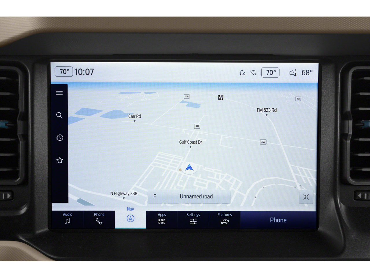 This Bronco Wildtrak is nicely equipped with 4-Wheel Disc Brakes, 4.7 Axle Ratio, 6 Speakers, ABS brakes, Air Conditioning, Alloy wheels, AM/FM radio: SiriusXM with 360L, AM/FM Stereo, Auto High-beam Headlights, Auto-dimming Rear-View mirror, Automatic temperature control, Brake assist, Compass, Connected Navigation, Delay-off headlights, Driver door bin, Driver vanity mirror, Dual front impact airbags, Dual front side impact airbags, Electronic Stability Control, Emergency communication system: 911 Assist, Exterior Parking Camera Rear, Front anti-roll bar, Front Bucket Seats, Front Center Armrest, Front dual zone A/C, Front fog lights, Front reading lights, Front wheel independent suspension, Fully automatic headlights, Heated Cloth Bucket Seats, Heated door mirrors, Heated front seats, Illuminated entry, Integrated roll-over protection, Leather Shift Knob, Low tire pressure warning, Navigation system: Connected Navigation, Occupant sensing airbag, Outside temperature display, Overhead airbag, Overhead console, Panic alarm, Passenger door bin, Passenger vanity mirror, Power door mirrors, Power steering, Power windows, Radio data system, Remote keyless entry, Security system, SiriusXM Radio w/360L, Speed control, Split folding rear seat, Steering wheel mounted audio controls, SYNC 4, Tachometer, Telescoping steering wheel, Tilt steering wheel, Traction control, Trip computer, Variably intermittent wipers, Voltmeter, and Wheels: 17 Black High Gloss-Painted Aluminum Price does not include dealer-installed equipment. Price(s) include(s) all costs to be paid by a consumer, except for licensing costs, registration fees, $799 administrative fees, taxes, and $798 Triton VIP Protection Plan.