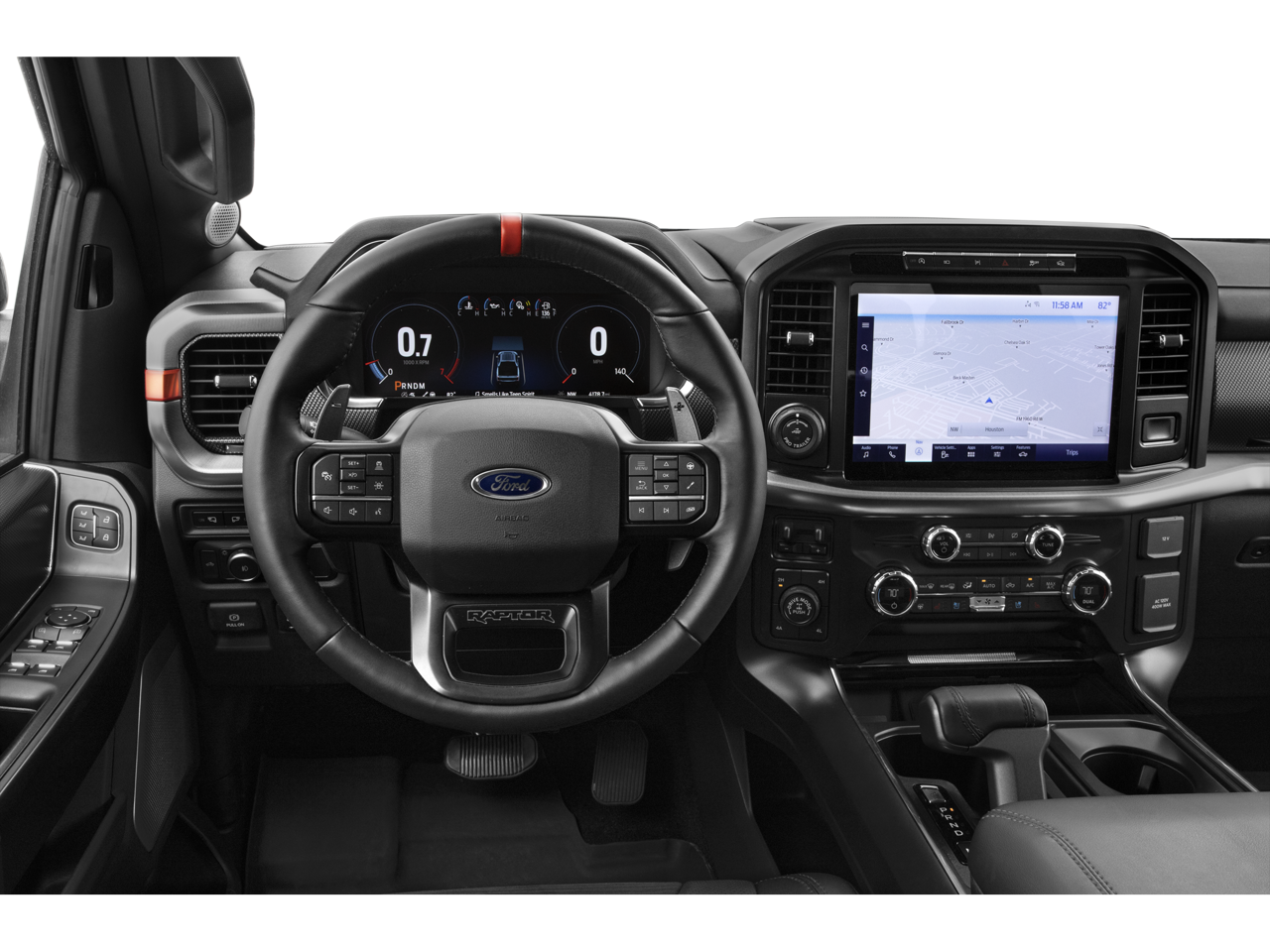 This F-150 Raptor is nicely equipped with Blue Interior Package (Recaro Unique Blue Accent 40/Console/40 Front Seats), Convenience Package (Connected Built-In Navigation, Interior Work Surface, and Partitioned Lockable Fold-Flat Storage), Equipment Group 801A High (Electronic Locking w/4.10 Axle Ratio, Forward Sensing System, Heated Steering Wheel, Leather Trim Seats w/Heated 2nd Row, LED Projector w/Dynamic Bending Headlamps, Power Tilt/Telescoping Steering Column w/Memory, Radio: B&O Unleashed Sound System by Bang & Olufsen, Rain-Sensing Wipers, SYNC 4 w/Enhanced Voice Recognition, Tailgate Applique FORD, Universal Garage Door Opener, and Wireless Charging Pad), GVWR: 7,050 lbs Payload Package, Torsen Package (Front-Axle w/Torsen Differential and Rigid LED Fog Lamp), Tow Technology Package (360 Degree Camera, Integrated Trailer Brake Controller, and Pro Trailer Backup Assist), 4WD, 17 Cast Aluminum Wheels, 4-Wheel Disc Brakes, 7 Speakers, ABS brakes, Adaptive suspension, Adjustable pedals, Air Conditioning, Alloy wheels, AM/FM radio: SiriusXM with 360L, Auto High-beam Headlights, Auto Start-Stop Removal, Auto-dimming door mirrors, Auto-dimming Rear-View mirror, Automatic temperature control, Brake assist, Bumpers: body-color, Compass, Delay-off headlights, Driver door bin, Driver vanity mirror, Dual front impact airbags, Dual front side impact airbags, Electronic Stability Control, Emergency communication system, Exterior Parking Camera Rear, Front anti-roll bar, Front Bucket Seats, Front Center Armrest, Front dual zone A/C, Front reading lights, Front wheel independent suspension, Fully automatic headlights, Heated door mirrors, Heated front seats, Illuminated entry, Lane Departure Warning System, Leather Trim Seats, Low tire pressure warning, Memory seat, Navigation system: Connected Navigation, New Feature 2, New Feature 3, New Feature 4, New Feature 5, New Feature 6, Occupant sensing airbag, Outside temperature display, Overhead airbag, Overhead console, Panic alarm, Passenger door bin, Passenger vanity mirror, Pedal memory, Power door mirrors, Power driver seat, Power passenger seat, Power steering, Power windows, Radio data system, Radio: AM/FM SiriusXM w/360L, Rear reading lights, Rear step bumper, Rear window defroster, Remote keyless entry, Security system, Speed control, Speed-sensing steering, Split folding rear seat, Steering wheel mounted audio controls, Tachometer, Telescoping steering wheel, Tilt steering wheel, Traction control, Trip computer, Turn signal indicator mirrors, Variably intermittent wipers, and Ventilated front seats Price does not include dealer-installed equipment. Price(s) include(s) all costs to be paid by a consumer, except for licensing costs, registration fees, $799 administrative fees, taxes, and $798 Triton VIP Protection Plan.