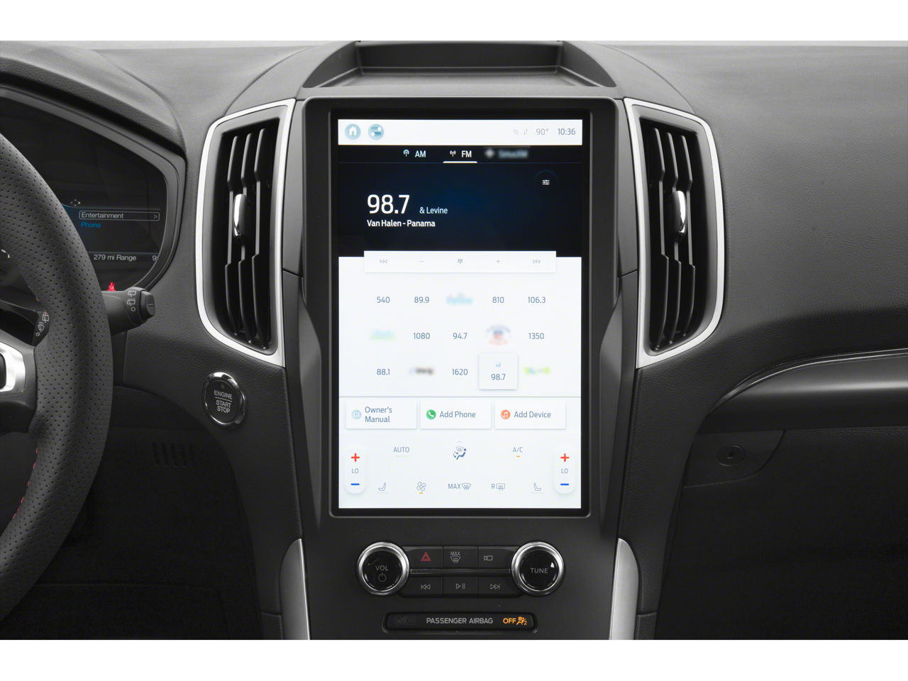 This Edge ST Line is nicely equipped with Equipment Group 250A, AWD, 3.80 Axle Ratio, 4-Wheel Disc Brakes, 6 Speakers, ABS brakes, ActiveX Trimmed Heated Bucket Seats, Air Conditioning, Alloy wheels, AM/FM radio: SiriusXM with 360L, AM/FM Stereo, Auto High-beam Headlights, Auto-dimming Rear-View mirror, Automatic temperature control, Black Roof-Rack Side Rails, Brake assist, Bumpers: body-color, Compass, Delay-off headlights, Driver door bin, Driver vanity mirror, Dual front impact airbags, Dual front side impact airbags, Electronic Stability Control, Emergency communication system: SYNC 4 911 Assist, FordPass Connect, Four wheel independent suspension, Front anti-roll bar, Front Bucket Seats, Front Center Armrest w/Storage, Front dual zone A/C, Front fog lights, Front License Plate Bracket, Front reading lights, Fully automatic headlights, Garage door transmitter, Heated door mirrors, Heated front seats, Illuminated entry, Knee airbag, Leather steering wheel, Low tire pressure warning, New Feature 2, New Feature 3, New Feature 4, New Feature 5, New Feature 6, Occupant sensing airbag, Outside temperature display, Overhead airbag, Overhead console, Panic alarm, Passenger door bin, Passenger vanity mirror, Power door mirrors, Power driver seat, Power Liftgate, Power passenger seat, Power steering, Power windows, Rear anti-roll bar, Rear Parking Sensors, Rear reading lights, Rear seat center armrest, Rear window defroster, Rear window wiper, Remote keyless entry, Security system, SiriusXM w/360L, Speed control, Speed-Sensitive Wipers, Split folding rear seat, Spoiler, Steering wheel mounted audio controls, SYNC 4A w/Enhanced Voice Recognition, Tachometer, Telescoping steering wheel, Tilt steering wheel, Traction control, Trip computer, Variably intermittent wipers, and Wheels: 20 Premium Gloss Black-Painted Aluminum Price does not include dealer-installed equipment. Price(s) include(s) all costs to be paid by a consumer, except for licensing costs, registration fees, $799 administrative fees, taxes, and $798 Triton VIP Protection Plan.