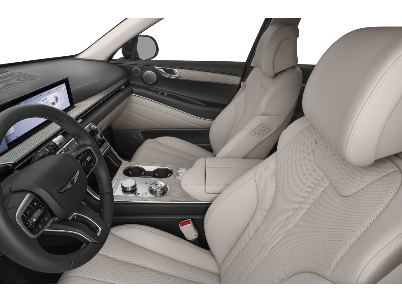 This GV80 2.5T Advanced is nicely equipped with 18 Speakers, 3rd row seats: split-bench, 4-Wheel Disc Brakes, ABS brakes, Air Conditioning, Alloy wheels, AM/FM radio: SiriusXM, Anti-whiplash front head restraints, Auto High-beam Headlights, Auto tilt-away steering wheel, Auto-dimming door mirrors, Auto-dimming Rear-View mirror, Auto-leveling suspension, Automatic temperature control, Brake assist, Bumpers: body-color, Compass, Delay-off headlights, Driver door bin, Driver vanity mirror, Dual front impact airbags, Dual front side impact airbags, Electronic Stability Control, Emergency communication system: Genesis Connected Services, Exterior Parking Camera Rear, Four wheel independent suspension, Front anti-roll bar, Front Bucket Seats, Front Center Armrest, Front dual zone A/C, Front reading lights, Fully automatic headlights, Garage door transmitter: HomeLink, Genuine wood console insert, Genuine wood dashboard insert, Genuine wood door panel insert, Heated and Ventilated Front Bucket Seats, Heated door mirrors, Heated front seats, Heated steering wheel, Illuminated entry, Knee airbag, Leather Seating Surfaces, Leather steering wheel, Low tire pressure warning, Memory seat, Navigation System, New Feature 2, New Feature 3, New Feature 4, New Feature 5, New Feature 6, Occupant sensing airbag, Outside temperature display, Overhead airbag, Overhead console, Panic alarm, Passenger door bin, Passenger vanity mirror, Power door mirrors, Power driver seat, Power Liftgate, Power moonroof, Power passenger seat, Power steering, Power windows, Radio data system, Radio: AM/FM/HD Bose Premium Sound System, Rain sensing wipers, Rear air conditioning, Rear anti-roll bar, Rear reading lights, Rear seat center armrest, Rear side impact airbag, Rear window defroster, Rear window wiper, Reclining 3rd row seat, Remote keyless entry, Security system, Speed control, Speed-sensing steering, Speed-Sensitive Wipers, Split folding rear seat, Spoiler, Steering wheel memory, Steering wheel mounted audio controls, Tachometer, Telescoping steering wheel, Tilt steering wheel, Traction control, Trip computer, Turn signal indicator mirrors, Variably intermittent wipers, Ventilated front seats, and Wheels: 20 x 8.5J Dark Gray Matte Alloy Price does not include dealer-installed equipment. Price(s) include(s) all costs to be paid by a consumer, except for licensing costs, registration fees, $799 administrative fees, taxes, and $798 Triton VIP Protection Plan.