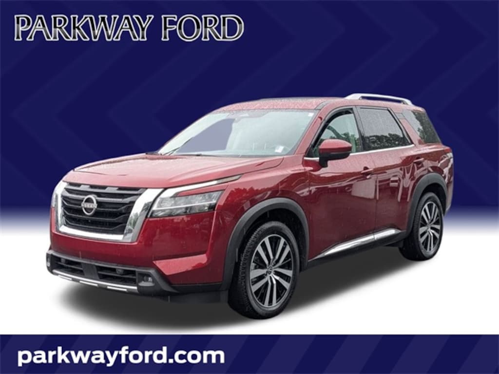 2023 Nissan Pathfinder Platinum 4D Sport Utility 4WD V6 Scarlet Ember Tintcoat, 20'' Alloy Wheels, Panoramic Moonroof, LED Fog Lights, One Owner!!!